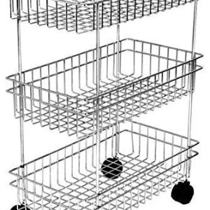 National Stainless Steel Fruit and Vegetable Storage Stand Rack Multipurpose Baskets Kitchen Trolley Modern Kitchen Storage Rack (3 Layer Trolly)