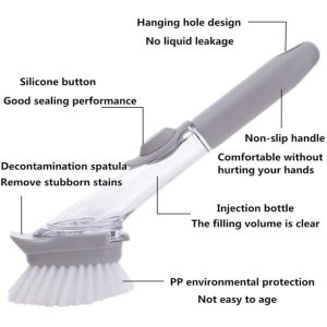 Soap Dispensing Dish Brush Dishwasher Brush for Kitchen Sink Pot Brush 1 Dishwashing Brush and 3 Replacement Sponge Head
